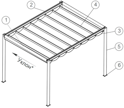 * конструкция перголы не обеспечивает полную герметичность системы. При дожде вода уходит на сторону.